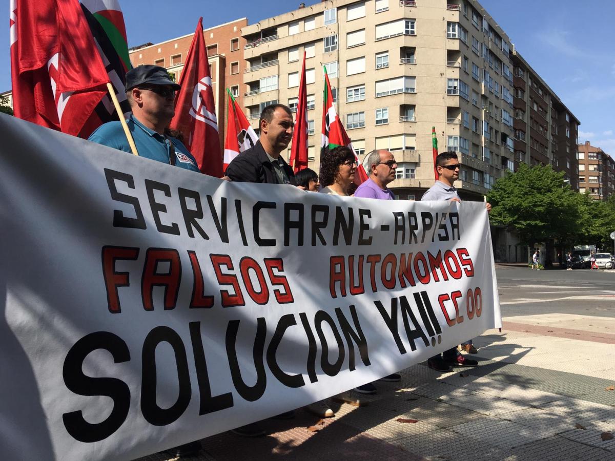Concentración frente a los juzgados de Vitoria para exigir que los 120 falsos autónomos de Arpisa se incorporen a la empresa cárnica