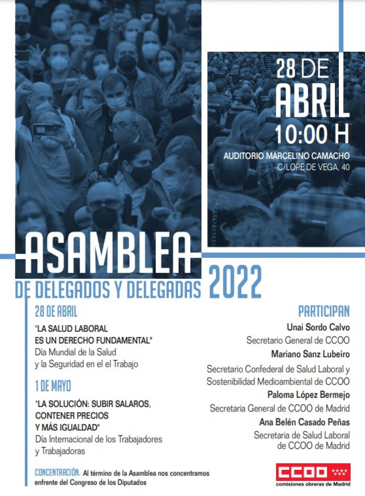 • El próximo jueves 28 Abril, en el Auditorio Marcelino Camacho, sede CCOO Madrid, calle Lope de Vega, 40