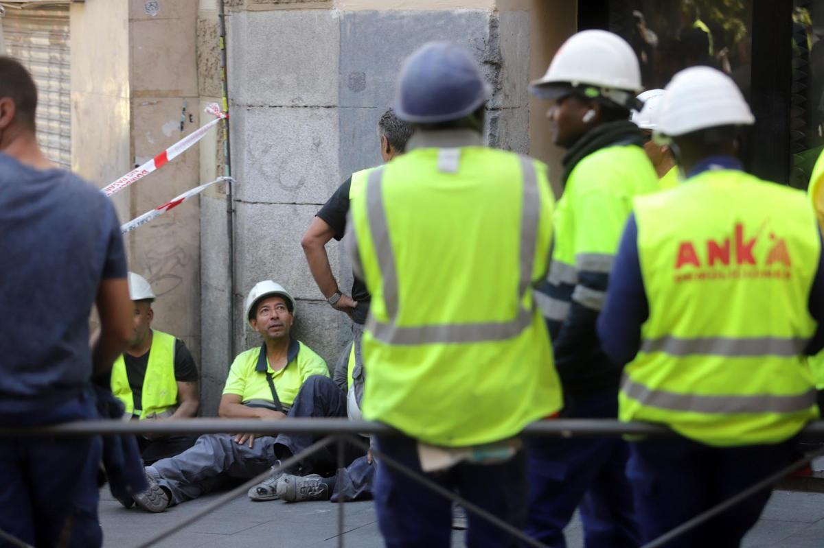 Obreros despues del siniestro de la calle de las Hileras